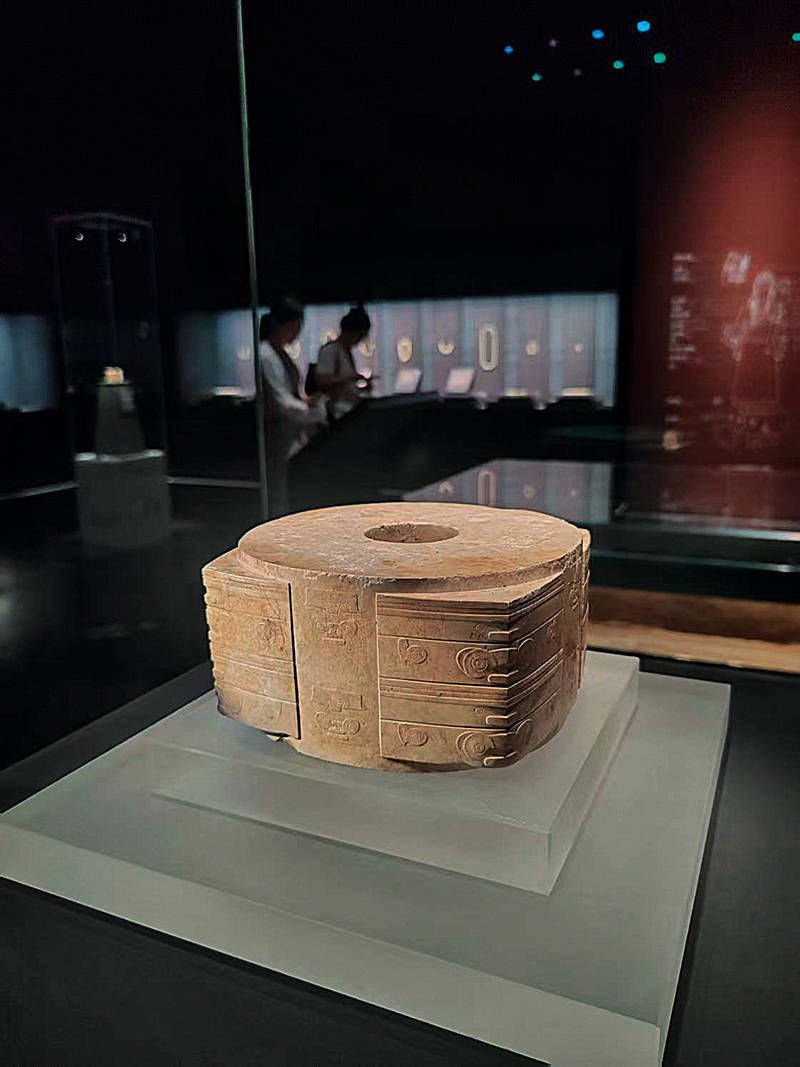 在浙江省博物馆之江馆区展出的“良渚玉琮王”(2025 年 10 月 10 日摄) 冯源摄 / 本刊